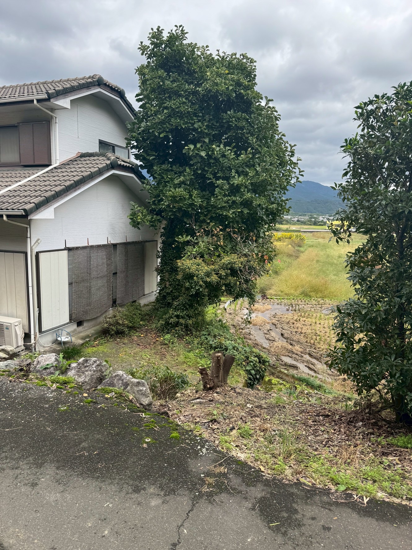 家屋に接近し、横方向に大きく生い茂っていた木を伐採しました。